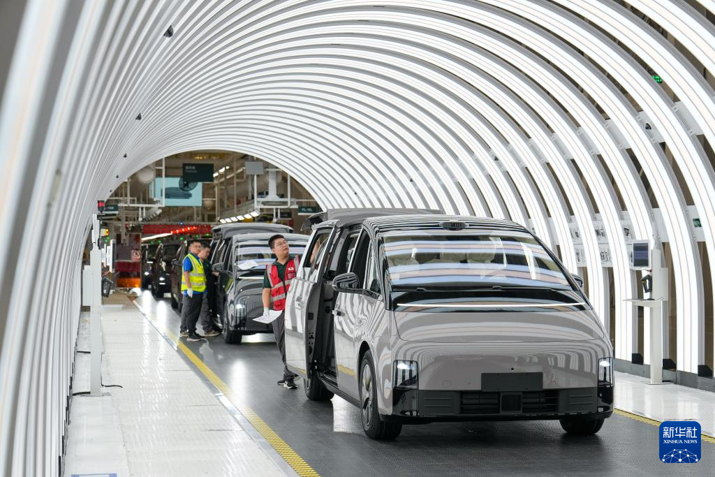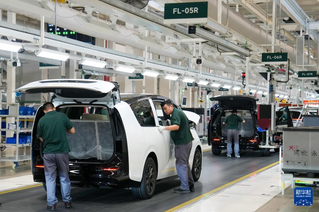 6月18日,工作人员在理想汽车北京智能制造基地总装车间内工作。
