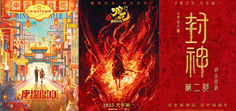 2025年春节档,中国电影市场强势开年。据统计,春节档电影票房达95.1亿元,观影人次达1.87亿,刷新中国影史春节档最高票房和人次纪录。图为2025年春节档电影海报拼图。 中央广播电视总台供图