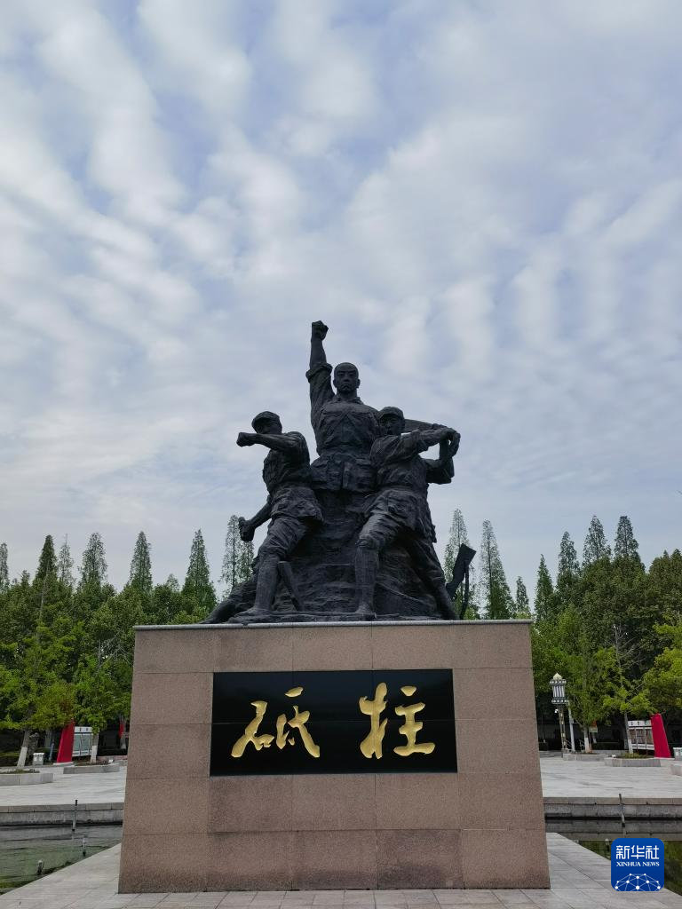 这是4月24日在江苏淮安刘老庄八十二烈士陵园拍摄的雕塑。新华社记者 丁增义 摄