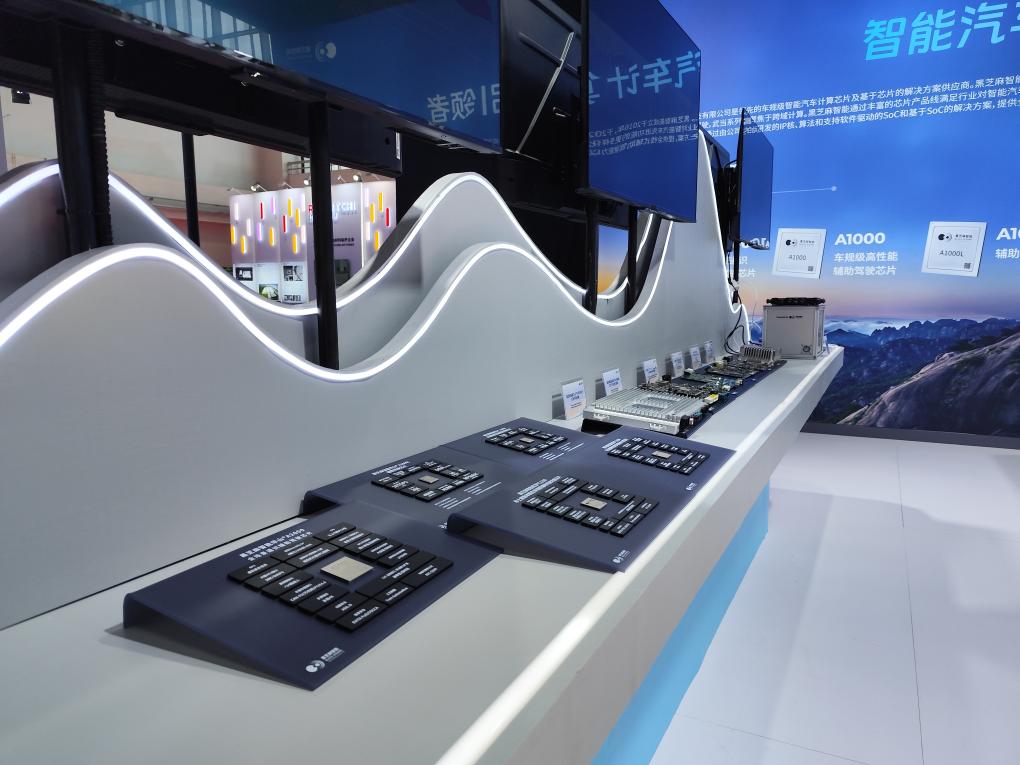 在黑芝麻智能科技有限公司展台,多款芯片产品依次排列。新华社记者 金地 摄