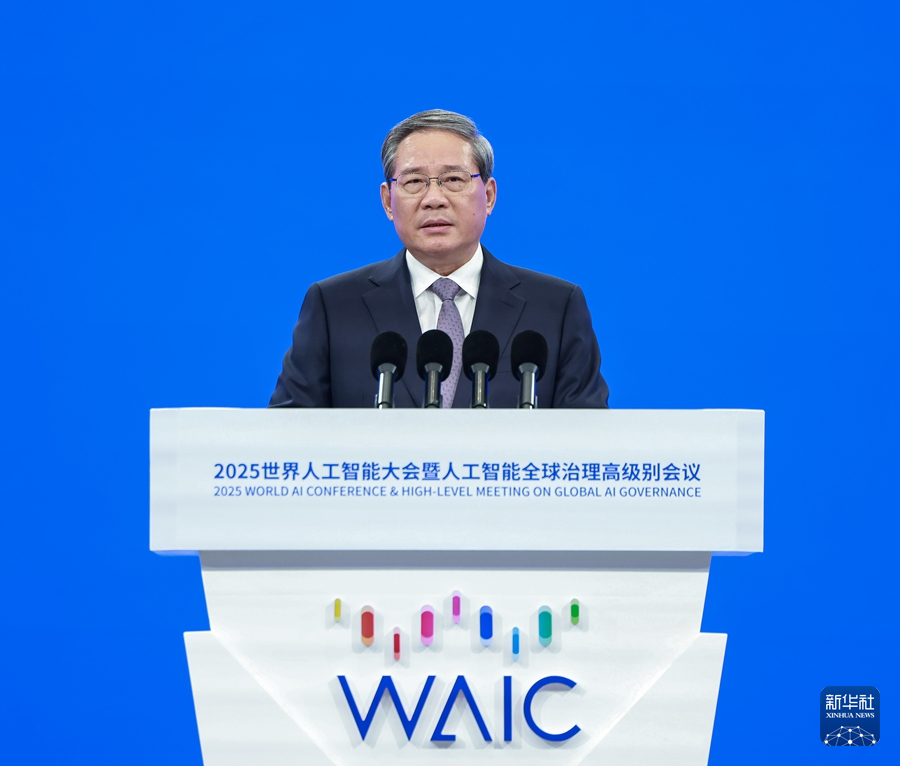 7月26日,国务院总理李强在上海出席2025世界人工智能大会暨人工智能全球治理高级别会议开幕式并致辞。 新华社记者 王晔 摄
