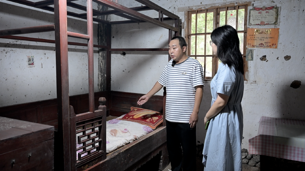 廖金荣在旧宅中向记者介绍当年“杜立特行动”队员查尔斯·奥祖克的养伤处。新华社记者 刘铭翔 摄