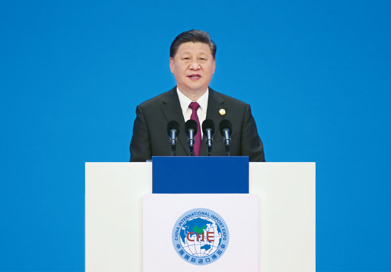 2018年11月5日,首届中国国际进口博览会在上海开幕。国家主席习近平出席开幕式并发表题为《共建创新包容的开放型世界经济》的主旨演讲。 新华社记者 姚大伟/摄