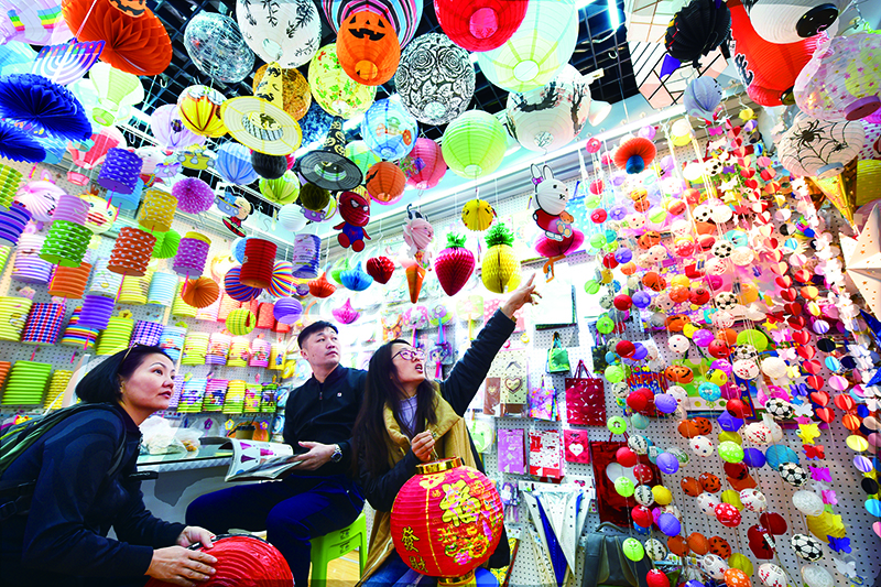 我国消费市场日益成熟,吸引了世界各国消费者前来购物。图为消费者在位于浙江义乌的中国小商品城国际商贸城挑选灯笼。 新华社记者 龚献明/摄