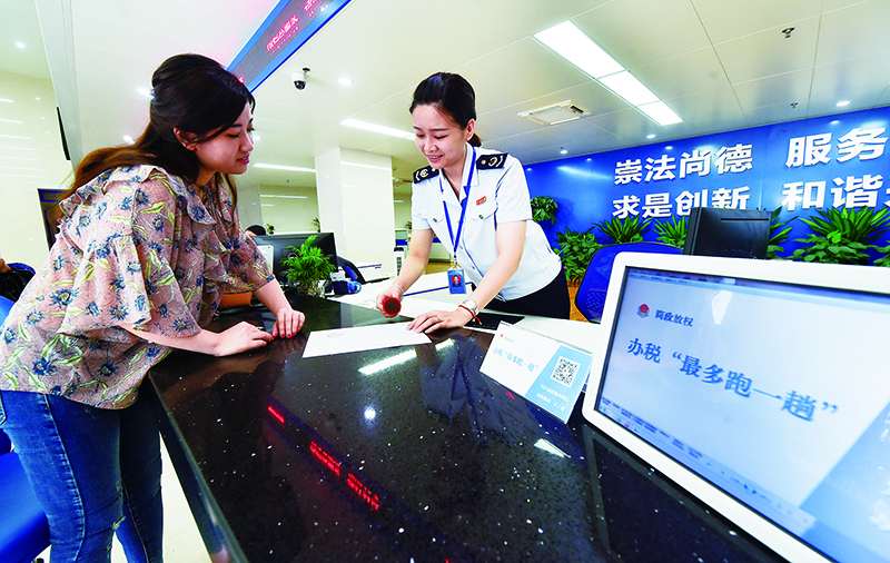 “放管服”改革为企业发展释放活力。图为福建地税推行“最多跑一趟”优化服务,工作人员在为纳税人办理涉税业务。 新华社记者 宋为伟/摄