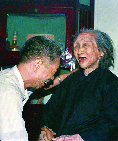 1989年中秋节,台胞谭先生回到湖南桂阳老家,与老母亲相对而泣。 中新社/视觉中国