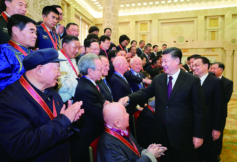 2018年12月18日,庆祝改革开放40周年大会在北京隆重举行。图为庆祝大会结束后,习近平等党和国家领导人会见受表彰人员及亲属代表。 新华社记者 鞠鹏/摄