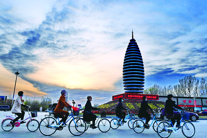 设立雄安新区,是以习近平同志为核心的党中央高举新时代改革开放旗帜作出的重大战略举措。图为市民在河北雄安新区容城县县城道路上骑行。 新华社记者 牟宇/摄