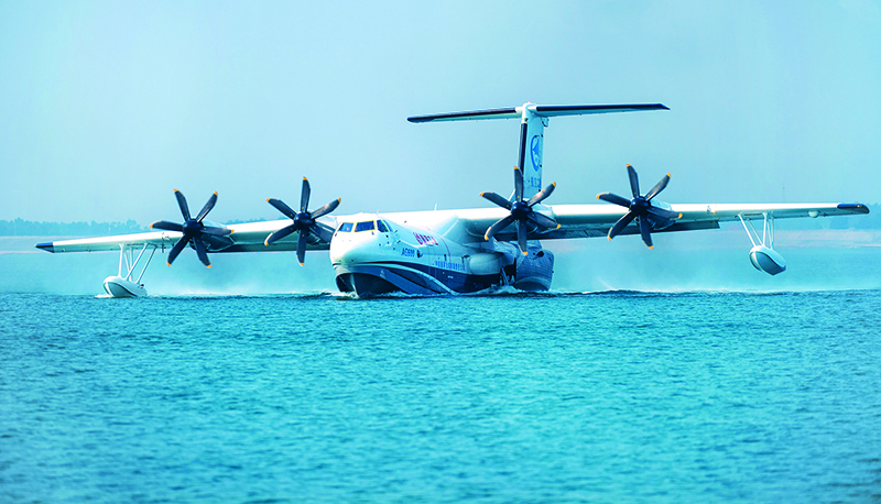 我国航空制造不断推动实现高质量发展。图为2018年10月20日,中国自主研制的大型水陆两栖飞机——“鲲龙”AG600成功实现水上首飞,中国大飞机迈出“上天入海”完整步伐。 新华社记者 熊琦/摄