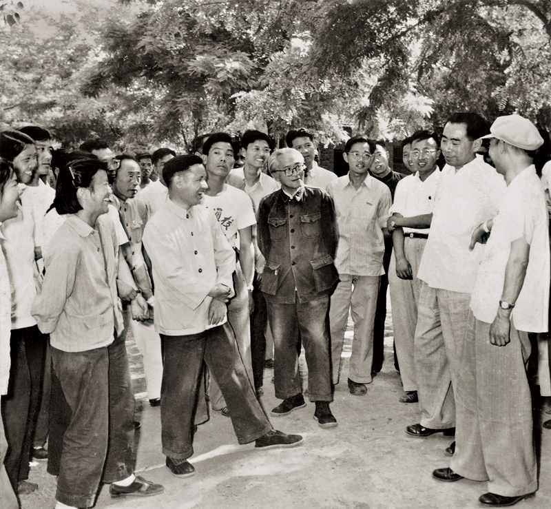 1951年、1957年、1959年周恩来总理三次回到母校南开大学,殷切期望师生“真正能够很好地为社会主义服务,为将来共产主义服务”。图为1959年5月28日,周恩来总理视察南开大学。 南开大学供图