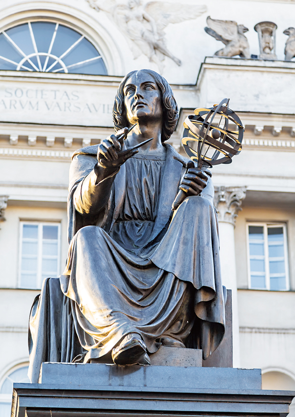 哥白尼(1473—1543)用毕生的精力去研究天文学,他提出的日心说冲破了中世纪的神学教条,彻底改变了人类的宇宙观念,为近代科学事业的发展奠定了重要思想基础。图为波兰华沙皇家科学之友协会大楼前的哥白尼雕塑。