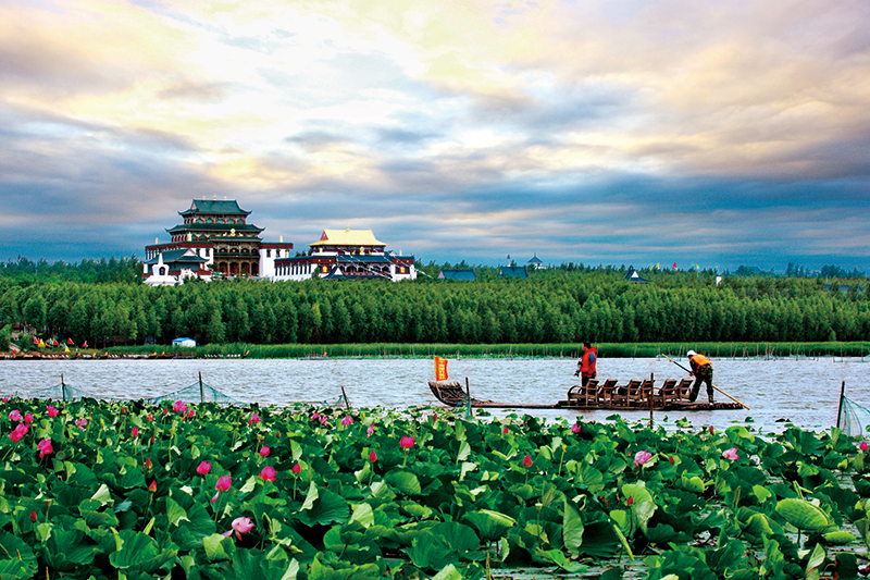 从查干湖南湖水岸乘车去北湖,十几公里的路程早成了一个生态走廊。且不说500平方公里湖面上冬天的白雪皑皑和夏日的碧波荡漾,也不说夏日里两岸和浅滩上的蒲草、蒹葭以及碧色连天的荷塘,单说色彩艳丽的翠鸟和迁徙的各类候鸟——燕鸥、灰鹤、白鹳、丹顶鹤、野鸭、大雁、矮脚鹬就让人心醉。据粗略统计,每年秋季迁徙至此的候鸟达200多种。而湿地外围被誉为“东北四大灌区之一”的4万公顷优质水稻田,夏如碧毯、秋似铺金,一直延伸至天边。