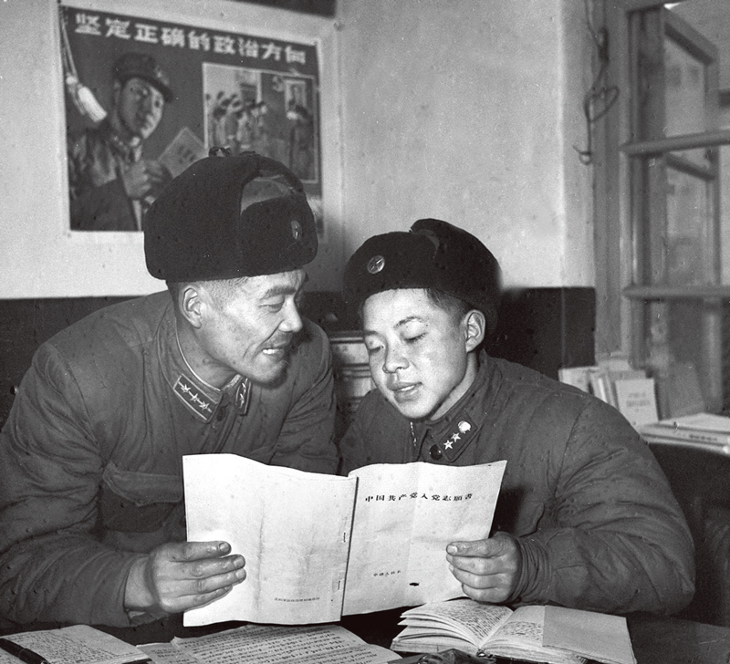 雷锋是一个时代的楷模,雷锋精神是永恒的。雷锋在日记中写道:一个人的作用,对于革命事业来说,就如一架机器上的一颗螺丝钉。螺丝钉虽小,其作用是不可估量的。螺丝钉要经常保养和清洗,才不会生锈。人的思想也是这样,要经常检查,才不会出毛病。图为1960年11月支部书记高士祥(左)通知雷锋被批准加入中国共产党。 新华社发 张峻/摄