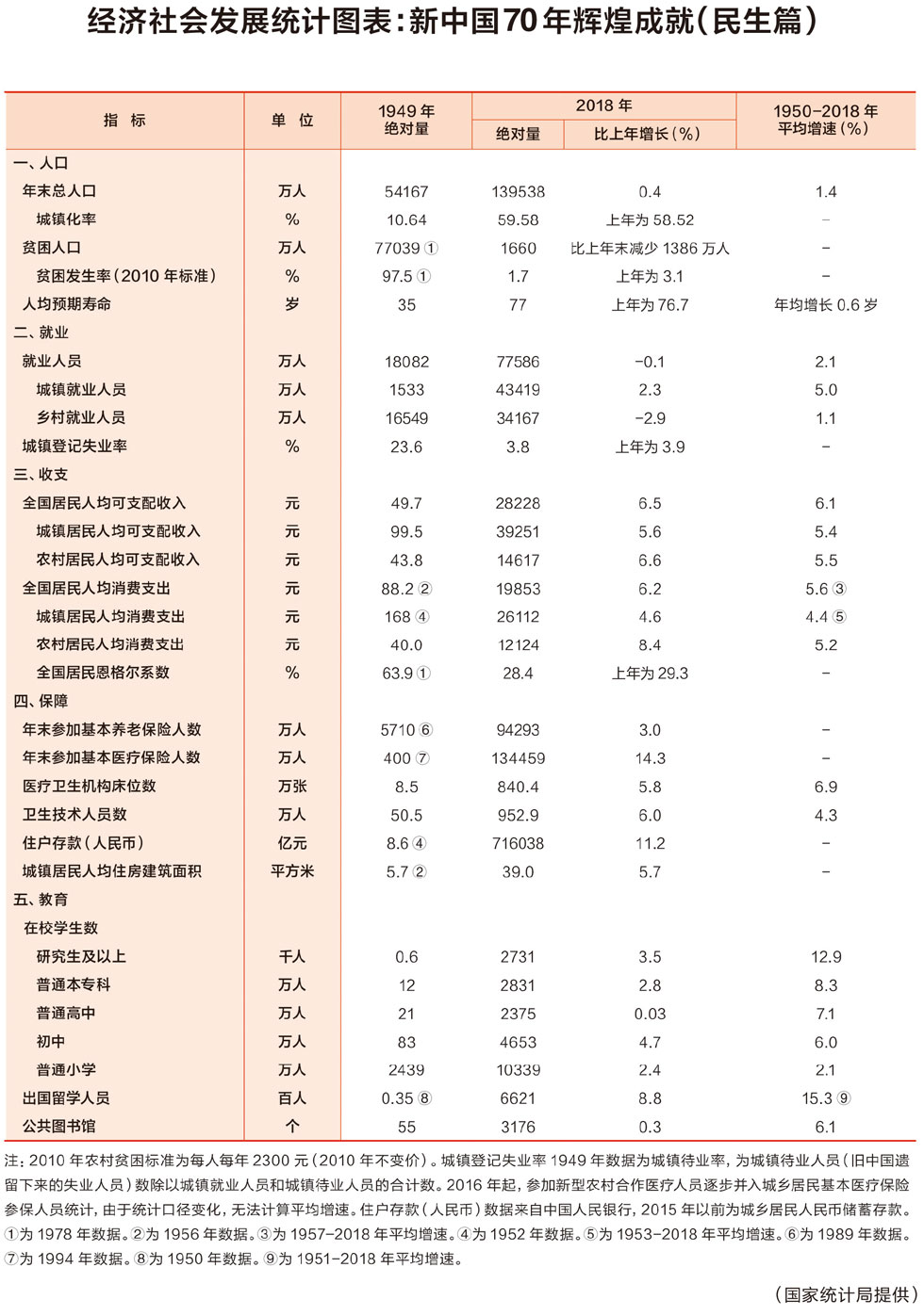 经济社会发展统计图表:新中国70年辉煌成就(民生篇)