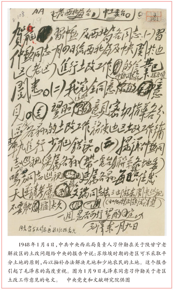 事实上,这种影响带来的矛盾和问题已经在实际工作中尖锐地表现出来。1948年1月2日,中共中央西北局负责人习仲勋向中央报告了有的部队破坏纪律,在新解放区没收商人财产和敌军官佐及其家属财产,造成恶劣影响的行为。当月4日,习仲勋再次向中央报告,指出老区土地改革中照搬新区做法,可能导致打击面过宽的问题。习仲勋的两次报告,引起了毛泽东的高度重视。1月9日,毛泽东批示转发了习仲勋1月2日的报告,并做了批语;同日又致电西北局,同意习仲勋关于老区土地改革工作的意见。习仲勋的报告反映了各地在制定和执行政策上存在的偏差,不能不引起毛泽东的高度重视。收到报告后仅仅相隔数日,毛泽东就起草了建立报告制度的指示。