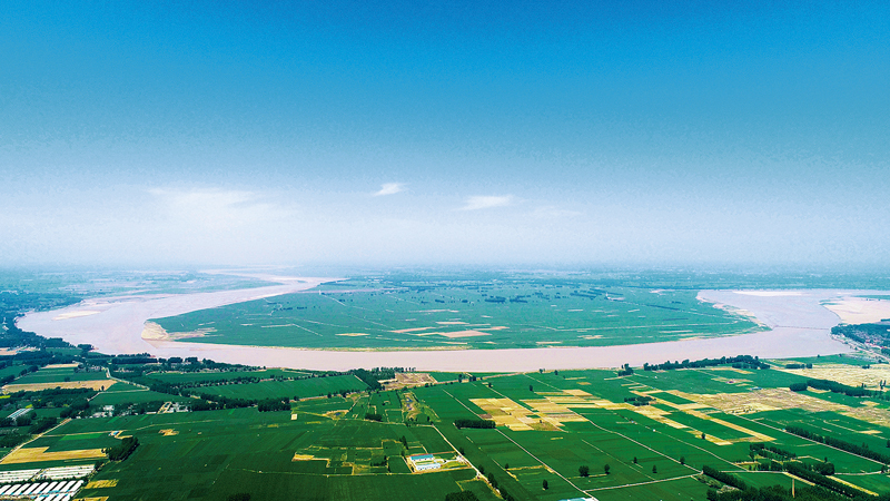 河南着力打造防护安全带、生态保护带、滨水景观带、旅游休闲带,让母亲河越来越健康美丽。图为黄河兰考县东坝头段,九曲黄河最后一道弯,2014年3月习近平总书记到这里视察。 河南日报供图