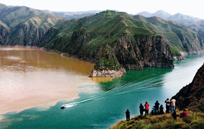 流经甘肃的洮河在与黄河交汇处的刘家峡水库清波“相遇”时,形成了一绿一黄两条水流的交汇奇观。 新甘肃·甘肃日报记者 张铁梁/摄
