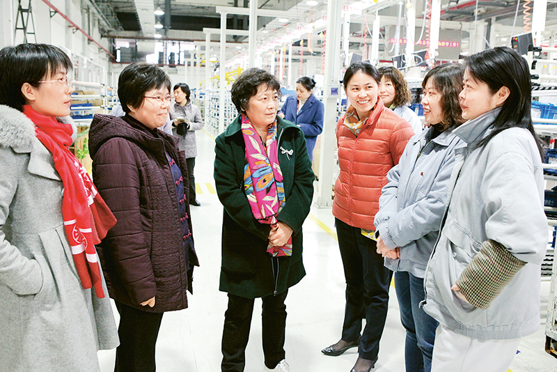 全总把大兴调研之风、密切与职工群众的血肉联系作为正风肃纪的重要切入点,树立起以职工为中心的鲜明导向。图为2018年3月19日,全总女职工部党支部赴上海柴油机股份有限公司调研,在生产车间与女职工面对面交流,了解她们的意见建议。 全总机关党委供图