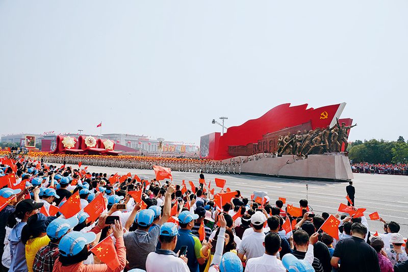 新中国成立70年来,我们党领导人民创造了世所罕见的经济快速发展奇迹和社会长期稳定奇迹,中华民族迎来了从站起来、富起来到强起来的伟大飞跃。图为2019年10月1日上午,在庆祝中华人民共和国成立70周年大会上经过天安门广场的“开天辟地”方阵。 新华社记者 杨世尧/摄