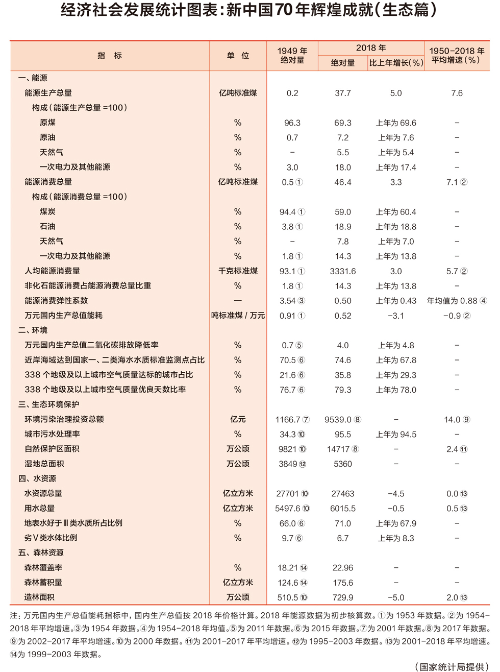 经济社会发展统计图表:新中国70年辉煌成就(生态篇)
