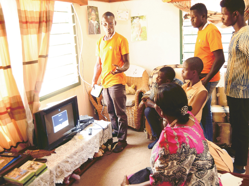 “万村通”项目是习近平总书记在2015年中非合作论坛约翰内斯堡峰会提出的中非人文领域合作举措之一,旨在为非洲1万个村落接入卫星数字电视信号。图为2018年7月20日,在乌干达首都坎帕拉市卡基里SOS儿童村,技术人员安装调试数字电视设备。 新华社发 约瑟夫·基恭杜/摄