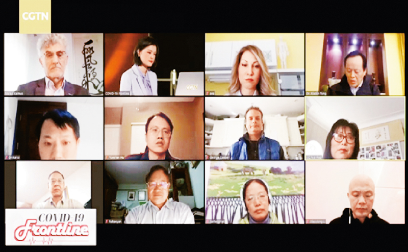 总台节目《全球疫情会诊室》通过视频连线向各国专家介绍中国一线医护人员抗疫宝贵经验 中央广播电视总台供图