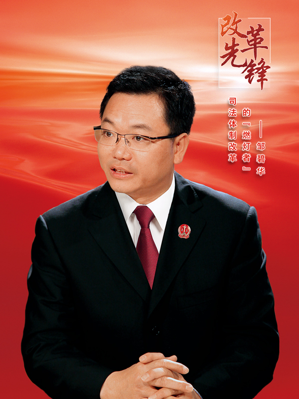 邹碧华是新时期公正为民的好法官、敢于担当的好干部。他崇法尚德,践行党的宗旨、捍卫公平正义,特别是在司法改革中,敢啃硬骨头,甘当“燃灯者”,生动诠释了一名共产党员对党和人民事业的忠诚。