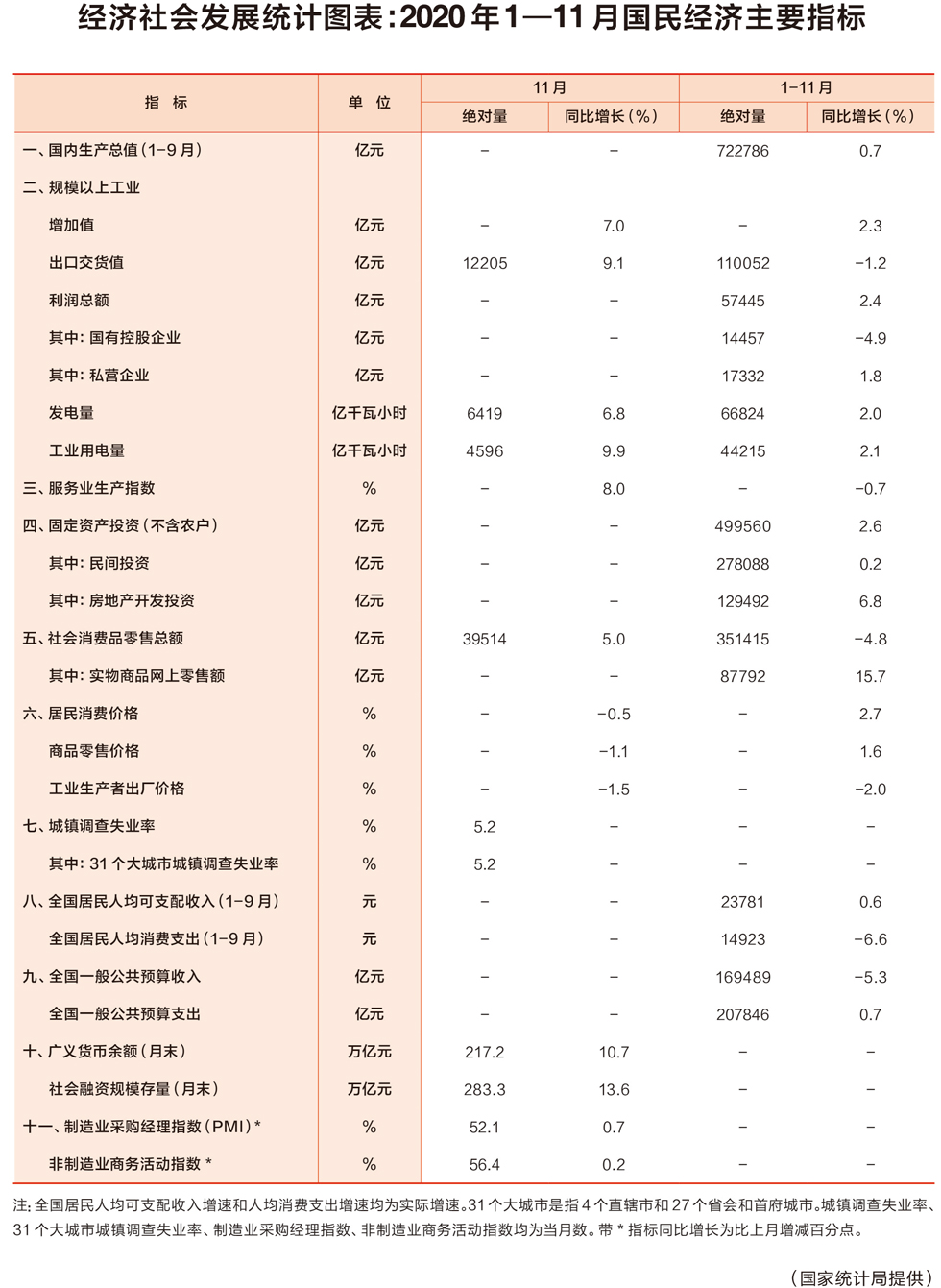 经济社会发展统计图表:2020年1—11月国民经济主要指标