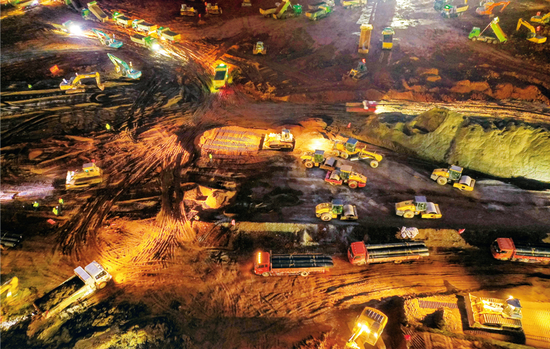 在抗击新冠肺炎疫情过程中,国资国企闻令而动、勇挑重担,主动服务国家防疫大局,在党和人民最需要的时候挺身而出、不辱使命。图为2020年1月26日,在武汉火神山医院建设现场的中建三局施工人员挑灯夜战,实行24小时不间断作业。 国务院国资委供图 邓红武/摄