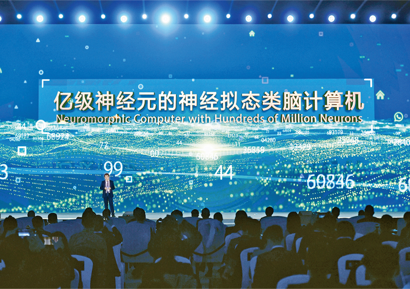2020年11月23日,“世界互联网领先科技成果发布”活动在浙江乌镇举行,这是第五次面向全球举行世界互联网领先科技成果发布活动,共评选出包括360全息星图网络空间测绘系统、亿级神经元的神经拟态类脑计算机、ACE智能交通等15项国内外有代表性的领先科技成果。图为浙江大学、之江实验室代表在发布活动上介绍“亿级神经元的神经拟态类脑计算机”。 新华社记者 黄宗治/摄
