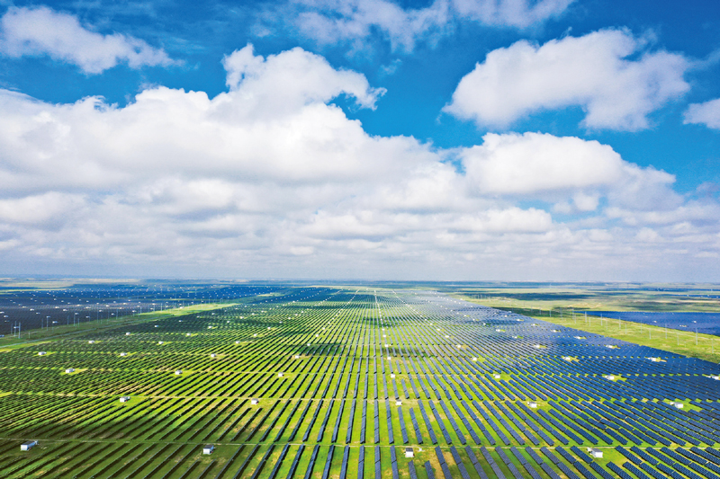 冬日暖阳下,青海省海南藏族自治州共和县塔拉滩的光伏产业园区,600多平方公里的土地宛若披上一层蓝色铠甲,熠熠生辉。荒漠戈壁变为“蓝色海洋”,贫困群众喜添“阳光收入”。更令人惊喜的是,在光伏板的遮挡下,荒滩上的草又长了起来。村民马生建说,如今他不仅有光伏发电收入分红,还能去园区放羊,每月能挣约3000元。