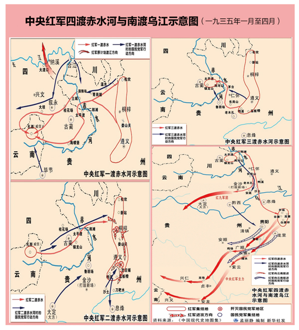 四渡赤水战役是遵义会议之后,中央红军在长征途中,处于国民党几十万重兵围追堵截的艰险条件下,进行的一次决定性运动战战役。毛泽东同志指挥中央红军转战川贵滇三省,巧妙地穿插于国民党军重兵之间,不断创造战机,在运动中大量歼灭敌人,牢牢地掌握战场的主动权。 新华社发