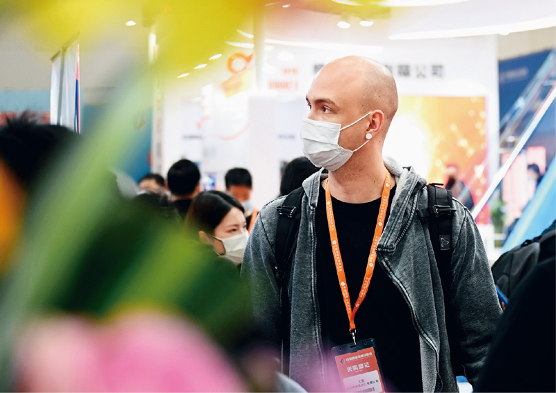 促进国内国际大循环的良性互动,须实施更大范围、更宽领域、更深层次对外开放。2021年3月18日,首届中国跨境电商交易会在福建省福州市举行,共吸引全球33个跨境电商平台、35个全国出口型产业带、200多家跨境电商服务企业和2000多家外贸供货企业参展。图为采购商在交易会现场参观。 新华社记者 林善传/摄