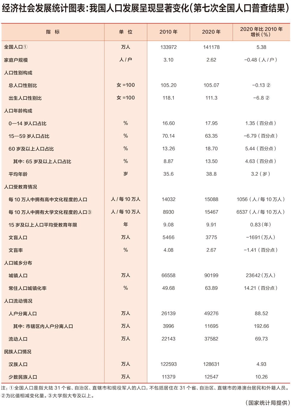经济社会发展统计图表:我国人口发展呈现显著变化(第七次全国人口普查结果)