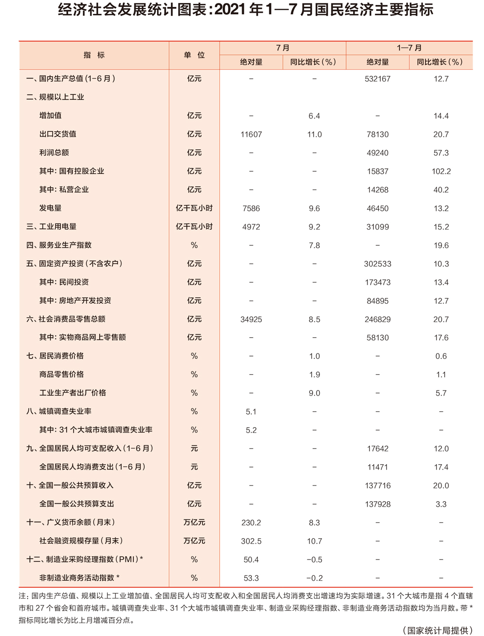 经济社会发展统计图表:2021年1—7月国民经济主要指标