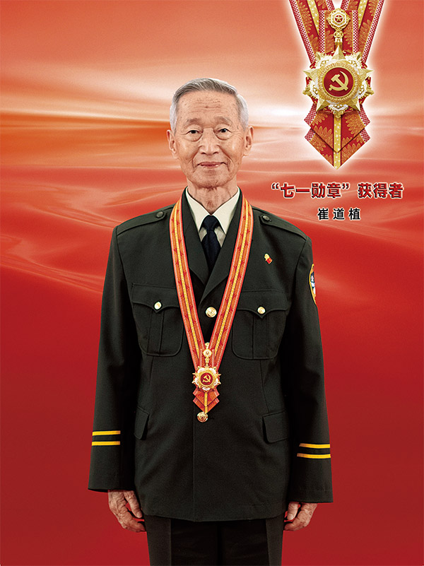 “只要我的眼能看、腿能动,我就要为党的刑侦事业工作到最后一刻!”80多岁高龄的崔道植仍忘我工作,参与破获久侦未破的系列案件,整理枪弹检验教材课件,为全国同行提供参考借鉴。崔道植荣获“全国公安系统一级英雄模范”、“全国离退休干部先进个人”等称号。在庆祝中国共产党成立100周年“七一勋章”颁授仪式上,习近平总书记亲自向他颁授勋章。
