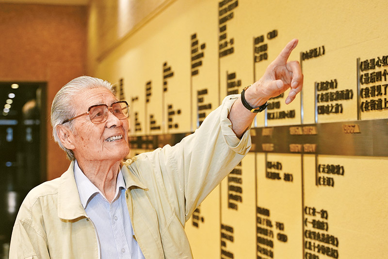 图为2021年6月16日,蓝天野在北京人民艺术剧院戏剧博物馆介绍经典剧目。 新华社发 缑宇/摄