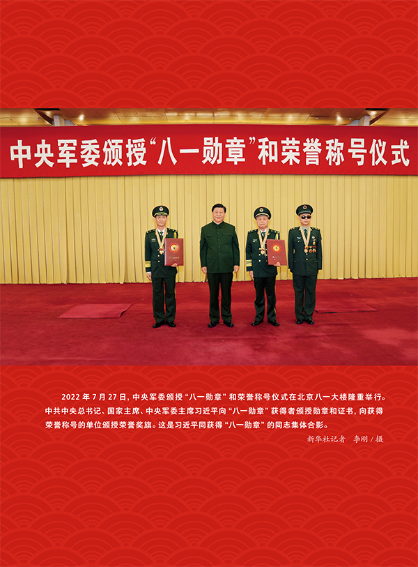 “八一勋章”获得者是全军官兵的杰出代表,是推进新时代强军伟业的标杆楷模。在庆祝中国人民解放军建军95周年之际,中央军委主席习近平签署命令,授予杜富国、钱七虎、聂海胜等同志“八一勋章”,向他们颁授勋章和证书。