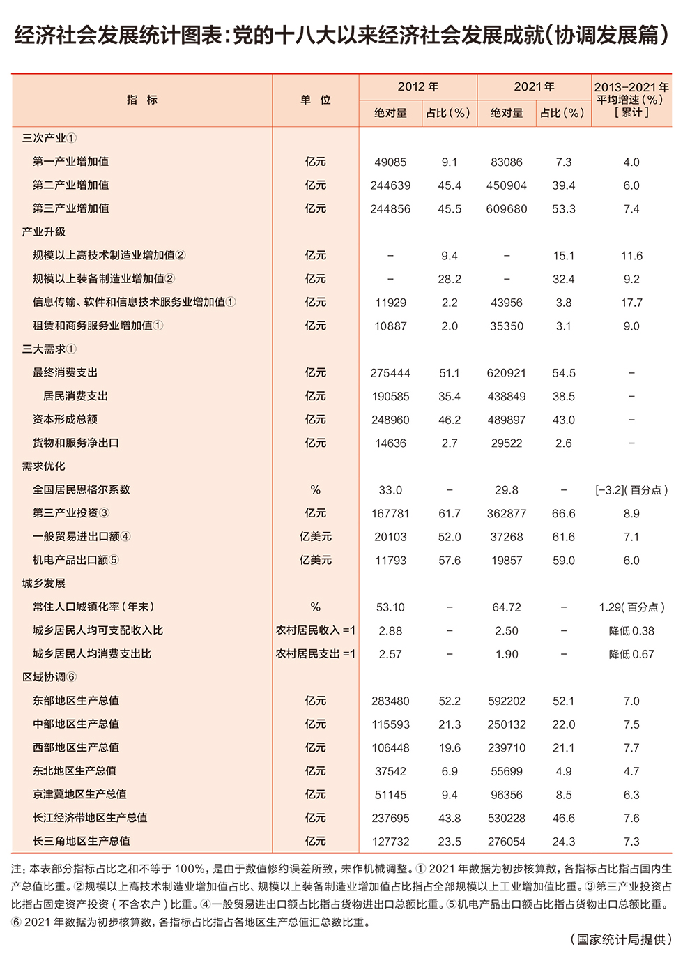经济社会发展统计图表:党的十八大以来经济社会发展成就(协调发展篇)