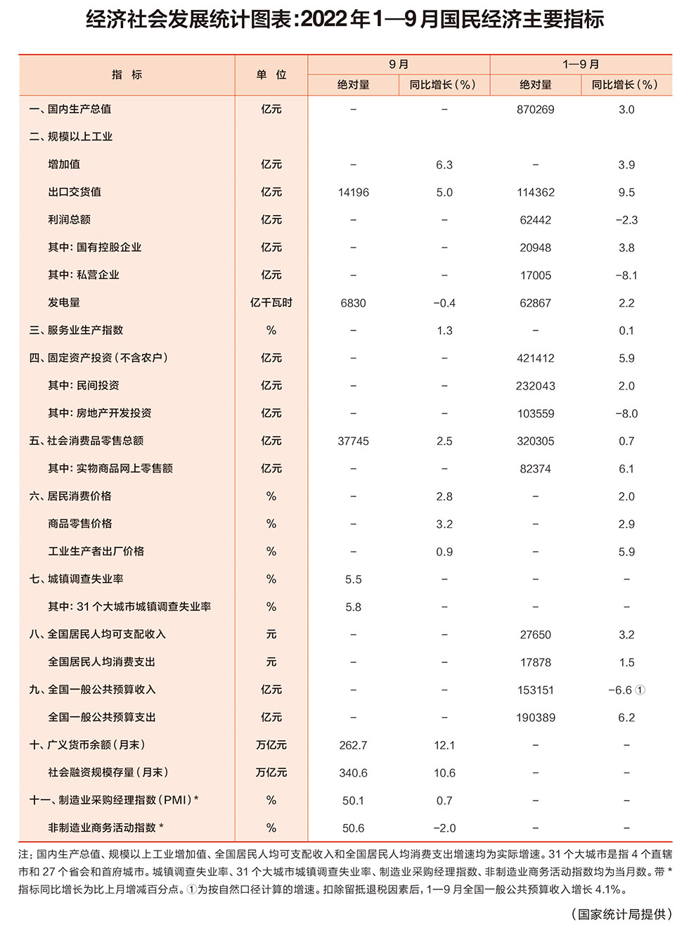 经济社会发展统计图表:2022年1—9月国民经济主要指标