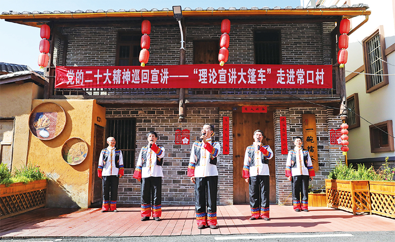 图为2022年11月10日,福建省三明市将乐县“理论宣讲大篷车”党的二十大精神巡回宣讲首站开进常口村。 三明市将乐县融媒体中心供图 林吟/摄