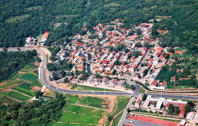 图为河南省林州市黄华镇庙荒村,西有巍巍太行山为屏障,红旗渠如一条玉带穿村而过。 林州市委宣传部供图