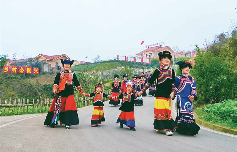 图为2022年11月18日,茗新村村民身着节日盛装,前往太阳广场庆祝彝历新年,畅想新征程新生活。 陈俊逸/摄