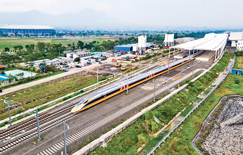 作为共建“一带一路”倡议和中印尼两国务实合作的标志性项目,雅万高铁全长142公里,最高设计时速350公里,连接印尼首都雅加达和万隆,是中国高铁首次全系统、全要素、全产业链在海外建设项目。图为2022年11月16日,高速铁路综合检测车行驶在雅万高铁试验段(无人机照片)。 新华社发 焦宏涛/摄