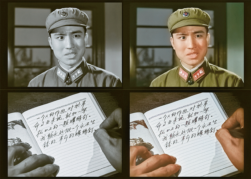 电影《雷锋》(1965版)4K修复前后对比图。 马栏山视频文创产业园供图