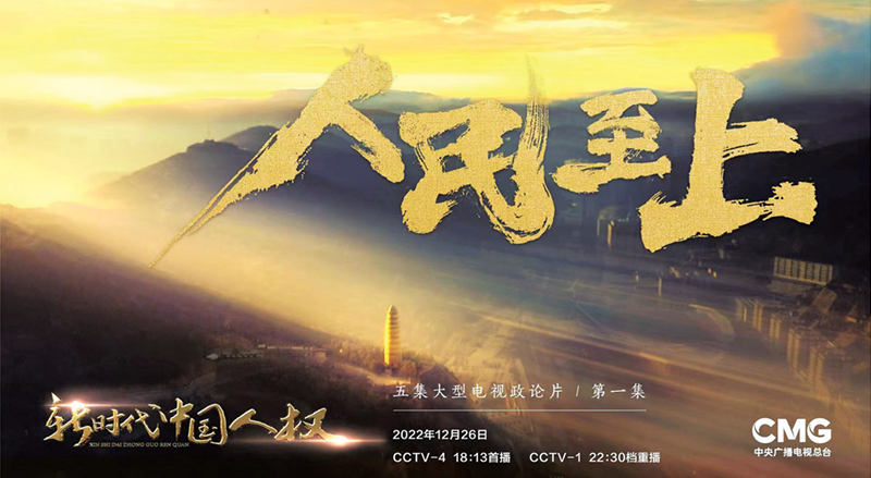 图为大型电视政论片《新时代中国人权》第一集《人民至上》海报。 中央广播电视总台供图