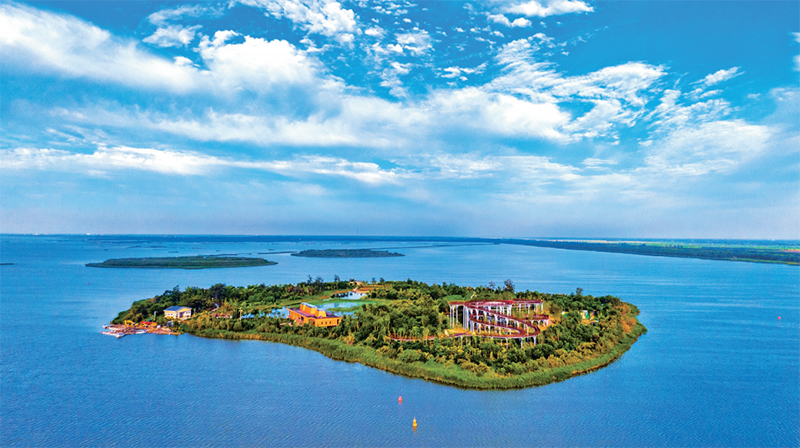 衡水湖国家级自然保护区经过实施湿地修复与保护、河网综合整治、环湖林地修复等多项工程,综合生态环境恢复成效显著,成为京津冀重要的生态环境支撑区、国家生态旅游示范区。图为2022年7月25日,蓝天白云下的衡水湖。 河北日报记者 田明/摄