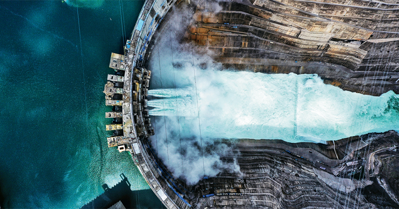 金沙江下游,一片河流与高山交错的雄奇土地,天府之国和彩云之南分列两岸。滔滔江水映衬着巍峨大坝,尽显“高峡平湖”之美。这里是实施“西电东送”的国家重大工程,也是当今世界在建规模最大、技术难度最高的水电工程——白鹤滩水电站。这一工程由中国三峡集团负责建设,工程开发任务以发电为主,兼顾防洪、航运,并促进地方经济社会发展。2022年12月20日,白鹤滩水电站实现全部机组投产发电。至此,长江干流上6座巨型梯级水电站“连珠成串”,形成了世界最大清洁能源走廊。