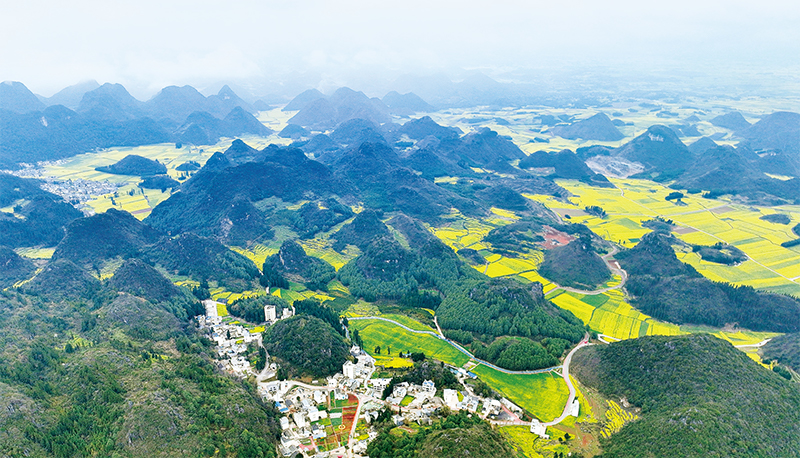 图为云南省曲靖市罗平县板桥镇云上村俯瞰图。 罗平县委宣传部供图 赵峰/摄