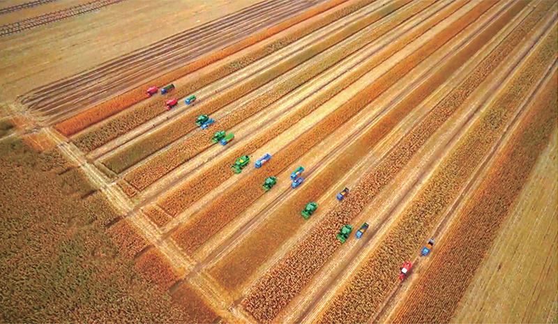 吉林省梨树县牢记习近平总书记“保护好黑土地这一‘耕地中的大熊猫’”的嘱托,不断增加黑土地保护利用的科技含量,不断推进农业生产的机械化、集约化、规模化、标准化。图为2022年梨树县万亩良田秋收美景。 吉林省委宣传部供图
